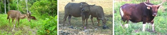 1. Jenis mamalia, meliputi gajah, badak bercula satu, tapir, rusa, banteng, kerbau, monyet, orang utan, harimau, tikus, bajing, kijang, ajag, kelelawar, landak dan babi hutan.