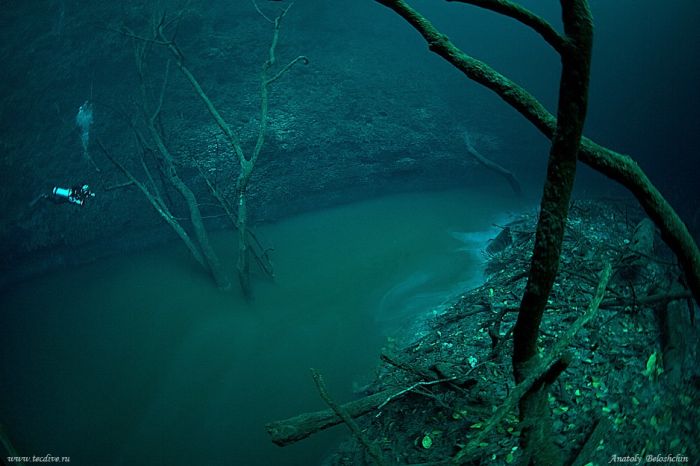 Saat ini dalam dunia maya dan media elektronik televisi dihebohkan Informasi adanya “Sungai di Dasar Laut”. Cenote Angelita, Meksiko terdapat sebuah gua. Jika anda menyelam sampai kedalaman 30 meter, airnya air segar (tawar), namun jika anda menyelam sampai kedalaman lebih dari 60 meter, airnya menjadi air asin, lalu anda dapat melihat sebuah “sungai” di dasarnya, lengkap dengan pohon dan daun daunan. Benarkah terdapat sungai di bawah laut seperti yang dihebohkan itu ?