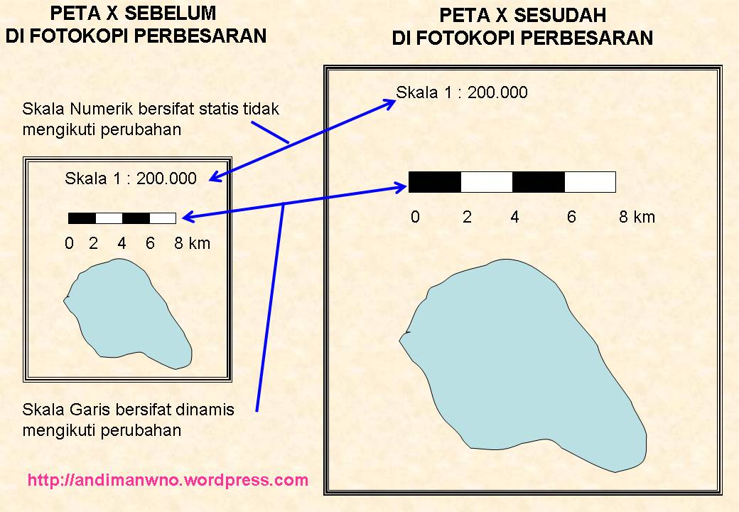Hal ini sebenarnya mengacu pada sifat yang berbeda dari kedua skala tersebut jika peta yang ada mengalami perubahan, misalnya diperbesar/diperkecil melalui media Scanning dan Fotokopi.