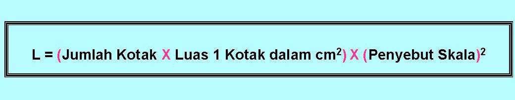 L = (Jumlah Kotak x Luas 1 Kotak dalam cmΒ²) x (Penyebut Skala)Β²