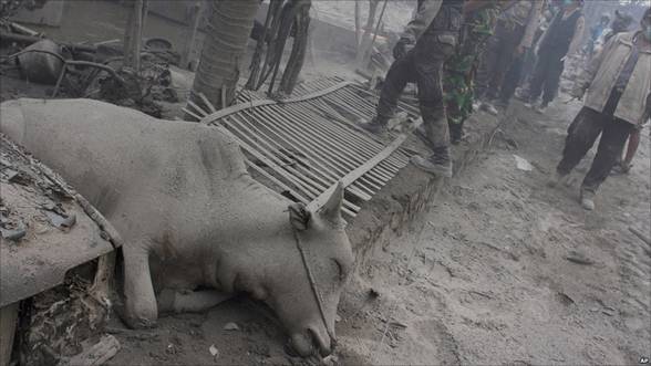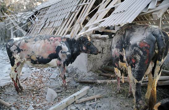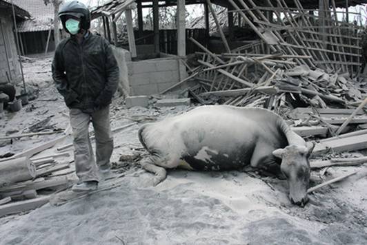 Erupsi Merapi beberapa waktu yang lalu menyebabkan banyak hewan ternak milik penduduk yangmenjadi korban. Banyak hewan ternak yang mati terpanggang oleh terjangan awan panas. Sebagian besar ternak yang mati menjadi korban adalah sapi yang ditinggal oleh pemiliknya mengungsi.Β Berikut ini ada beberapa foto-foto fauna yang menjadi korban akibat Erupsi Merapi yang dapat kita gunakan sebagai bahan refleksi bagi kita.