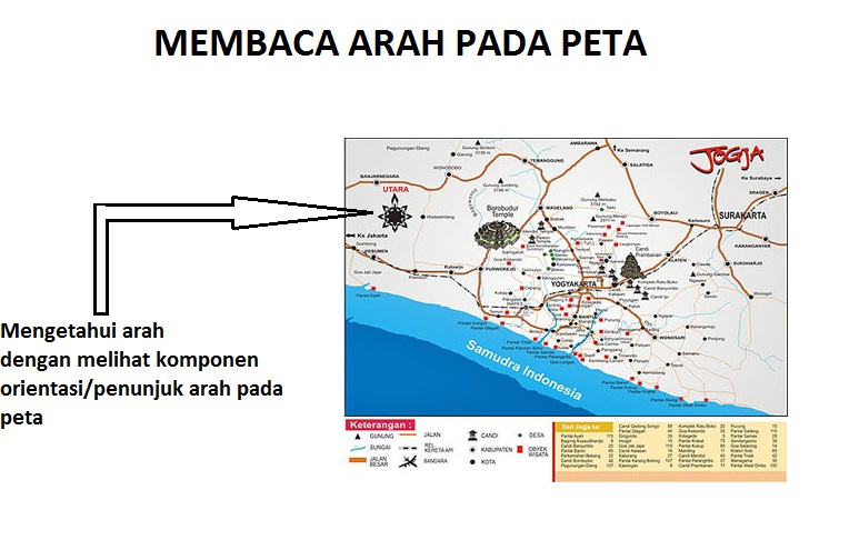 Peta merupakan sarana bantu yang kita gunakan untuk mempelajari lokasi suatu wilayah. Postingan sebelumnya kita dapat mengetahui bahwa pada peta terdapat beberapa informasi yang bisa kita dapatkan dan kita baca. Salah satu faktor yang dapat kita baca pada peta adalah ARAH.