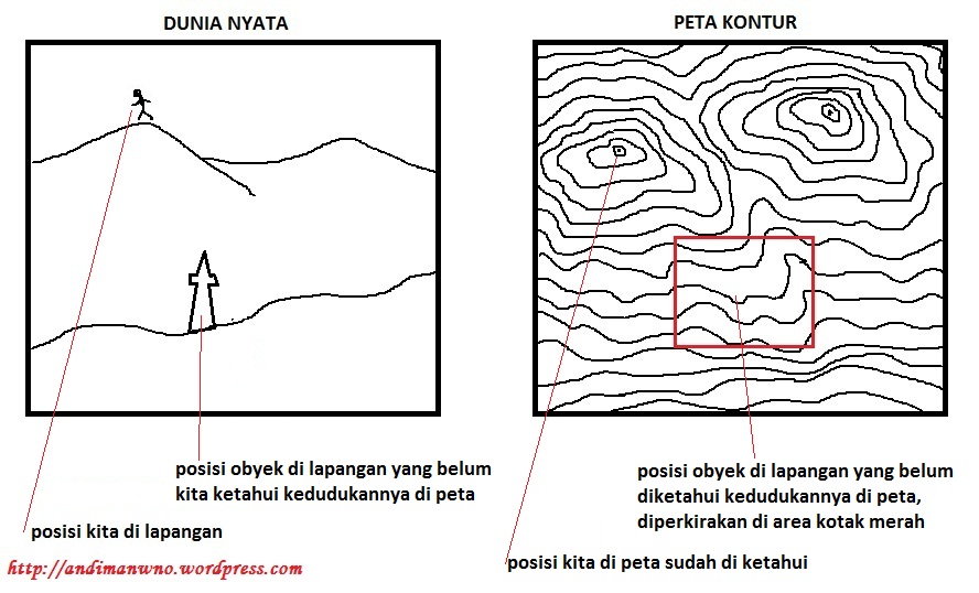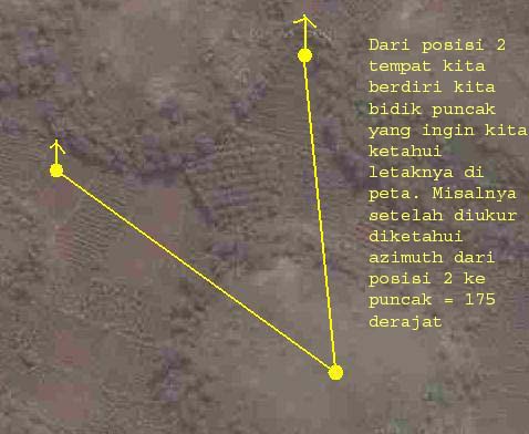 Karena perubahan data atau karena kurang akuratnya peta kadang kita akan menemukan ada obyek di muka bumi yang kita bisa kenali di lapangan tetapi tidak ada di peta. Bagaimana cara menemukan obyek yang ada di lapangan dengan menentukan posisinya di peta yang kita bawa? Caranya adalah dengan menggunakan metode Intersection.