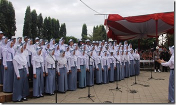 - Menyanyikan secara berulang lagu pada bait 1 sebanyak empat kali. Pada saat manyanyikan yang pertama kali siswa-siswi membaca lirik lagu