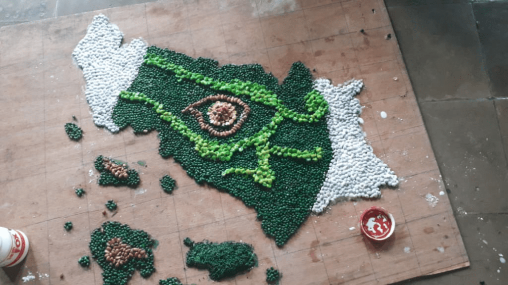 - Menempelkan biji-bijian ke-dalam gambar peta