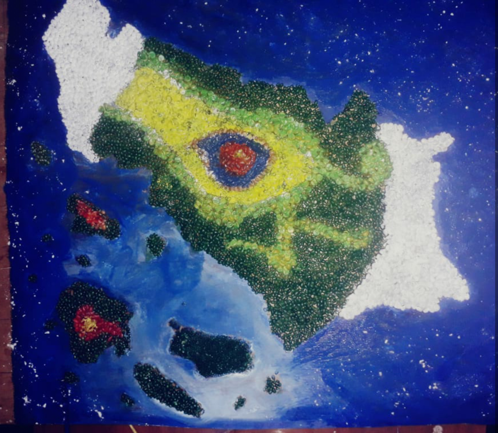 Untuk menyiasati minimnya pertemuan/tatap muka di kelas itu, maka saya memberi ganti kepada siswa-siswi saya dengan menyelenggarakan kelas malam berbasis online (akan saya posting segera) dan memberi dengan tugas sebagai bentuk ujian praktik membuat peta timbul dari barang-barang bekas atau barang tidak terpakai. Pemberian tugas ini bersifat bebas, dapat individu maupun kelompok. Pada tulisan kali ini saya memposting karya siswa yang membuat peta timbul wilayah propinsi Sumatra Utara dengan menggunakan aneka biji-bijian tanaman.