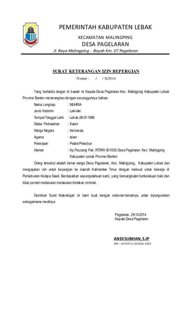 - Penduduk yang berpindah ke kota/kabupaten/propinsi lain tetapi tetap menjadi penduduk sah dari daerah yang ditinggalkan maka biasanya akan diminta membuat Surat Bepergian.