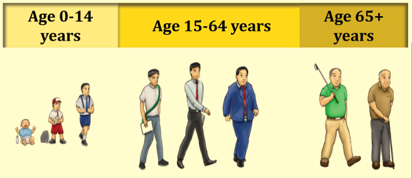 - Penduduk belum produktif, yaitu penduduk pada rentang usia 0 – 14 tahun