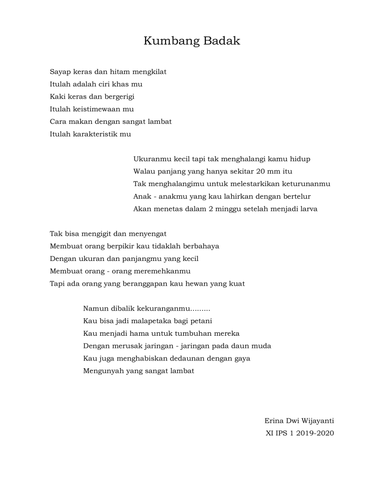 Puisi karya siswa ini ditulis menggunakan aplikasi pengolah kata dan kemudian dikirimkan lewat japri WA kepada saya.