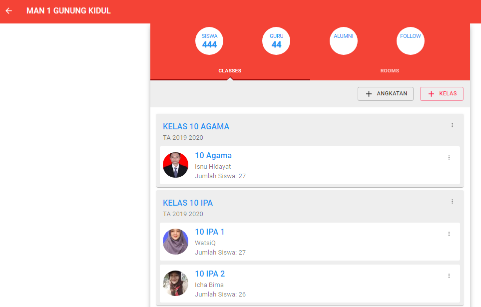 Gambar 05. Selanjutnya ada menu My School (khusus admin sekolah yang bertugas mengaprove guru dan siswa yang telah terdaftar sebagai guru atau siswa di madrasah). Ada juga menu kelas (My Class) dan ruang (My Rooms)