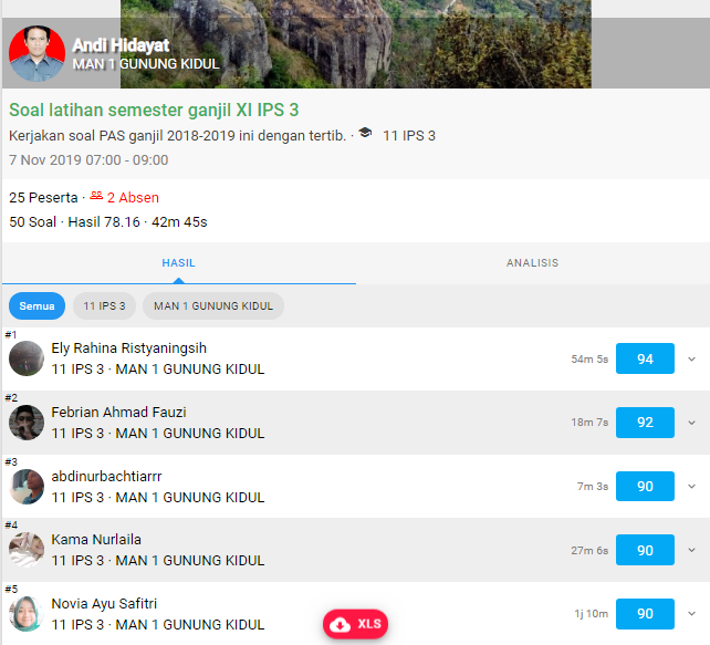 Gambar 11. Hasil pekerjaan siswa akan tampil urut berdasarkan perolehan nilai tertinggi.