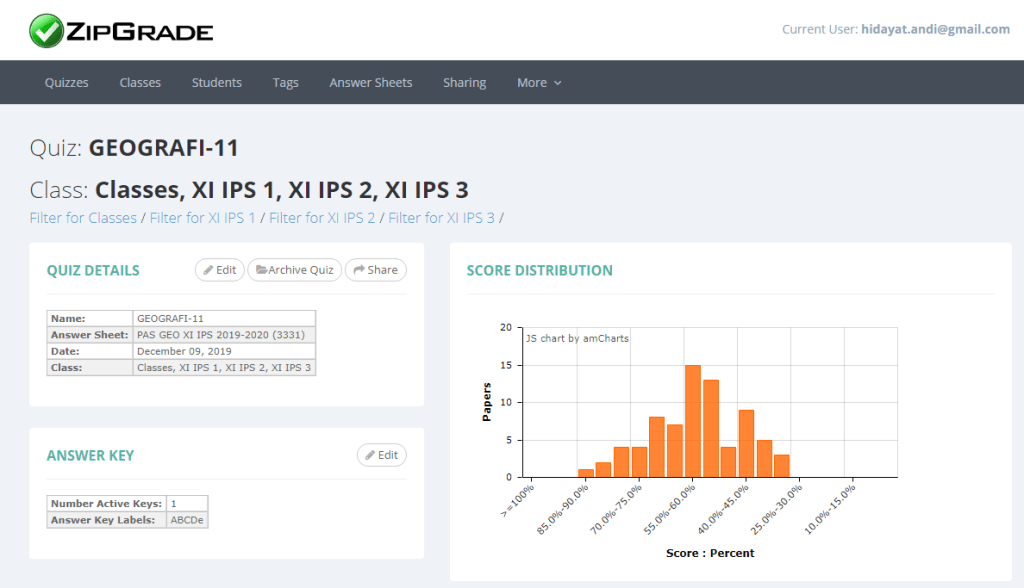 Tak terkecuali dengan mata pelajaran Geografi yang termasuk kelompok peminatan, maka koreksi lembar jawab yang begitu banyak ini juga menjadi pekerjaan yang selalu saya lakukan di akhir semester. Sebuah pekerjaan yang cukup melelahkan juga tetapi tetap saya selalu lakukan sebagai bagian dari pelaksanaan penilaian. Karena menjadi rutinitas yang akan selalu terjadi di setiap akhir semester maka kemudian saya mencari aplikasi koreksi yang bisa diinstall di smartphone dan dapat digunakan untuk koreksi lembar jawab dalam jumlah banyak dan dalam waktu yang singkat. Setelah tanya kesana-kemari ke mbah google akhirnya saya mendapatkan aplikasi koreksi LJK berbasis android yang bernama Zipgrade. Aplikasi ini bisa diakses di webnya yaitu zipgrade.com yang dapat diakses melalui perangkat PC, laptop, tablet maupun smartphone.