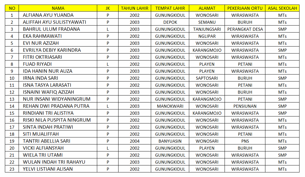 Hasil pekerjaan siswa dalam membuat tabel dan grafik hasil komposisi penduduk menurut kecamatan tempat tinggal, pekerjaan orangtua dan asal sekolah/madrasah sebelumnya.