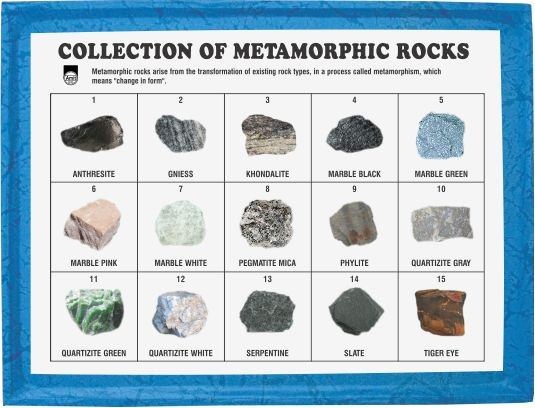 Beberapa contoh batuan Metamorf misalnya Marble, Slate, Quartzite, dan Gneiss