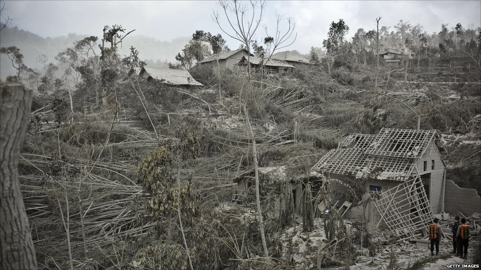 - Pemukiman warga sekitar rusak akibat material dari erupsi.