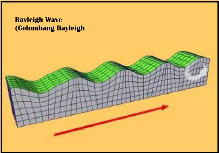 Rayleigh Wave memiliki ciri-ciri gerakan gelombang bersifat memutar dan lebih cepat dari Love Wave. Ditemukan oleh Lord Rayleigh pada 1885.