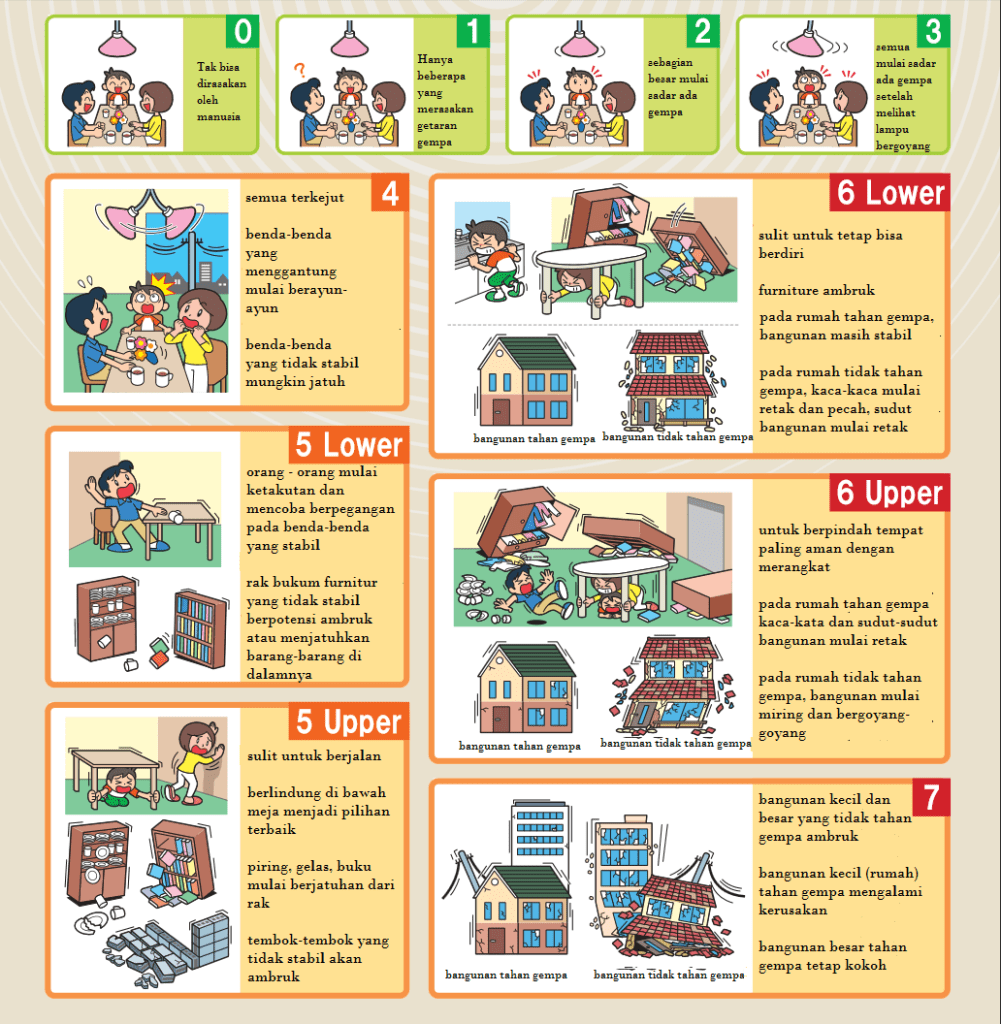 Dapat diketahui dari bergetarnya perabot dalam ruangan, suara gaduh bergetar. Kerusakan tidak terlalu signifikan.