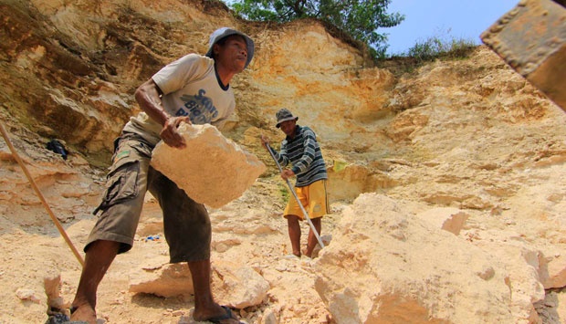 - Perbukitan karst dengan pekerjaan penambang kapur