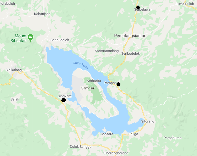 Pada peta di atas dapat digunakan sebagai gambaran tingkat keterjangkauan. Jarak lurus Parapat menuju Singkam lebih dekat dari pada jarak lurus Parapat menuju Serbelawan. Tetapi karena jarak lurus kedua tempat tersebut dipisahkan oleh danau Toba maka jalur jalan dibuat mengelilingi danau Toba sehingga jarak tempuh menjadi jauh. Jika menggunakan perahupun jarak tempuhnya juga tetap jauh karena di tengah danau Toba terdapat pulau Samosir yang membuat jalur perahu harus memutari pulau tersebut. Sedangkan meskipun jarak lurus Parapat menuju Serbelawan lebih jauh tetapi karena jarak tempuhnya lebih pendek maka tingkat keterjangkauannya menjadi lebih tinggi dibanding dari Parapat menuju Singkam.