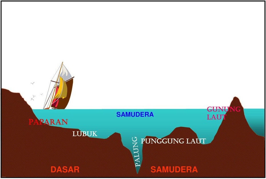 Bentuk permukaan bumi di dasar laut merupakan bentuk muka bumi yang tertutup oleh perairan yang luas dan dalam sehingga kita tidak bisa melihat secara langsung. Dengan bantuan teknologi penginderaan jauh permukaan bumi di dasar laut bisa direkam bentuknya dan disimpulkan memiliki kemiripan dengan daratan. Bentuk permukaan bumi di dasar laut secara umum berupa dangkalan, ambang laut, lubuk laut, punggung laut, gunung laut, pulau karang dan palung laut.