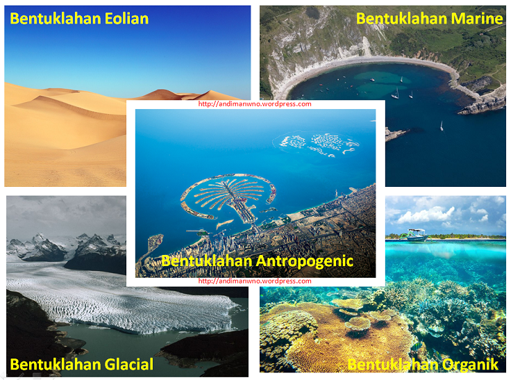 Bentuk permukaan bumi di atas merupakan bentuk umum. Bentuk permukaan bumi secara khusus oleh Verstappen (1983) dikelompokkan dalam 10 bentuk permukaan bumi (bentuk lahan) menurut asal proses terjadinya, antara lain :