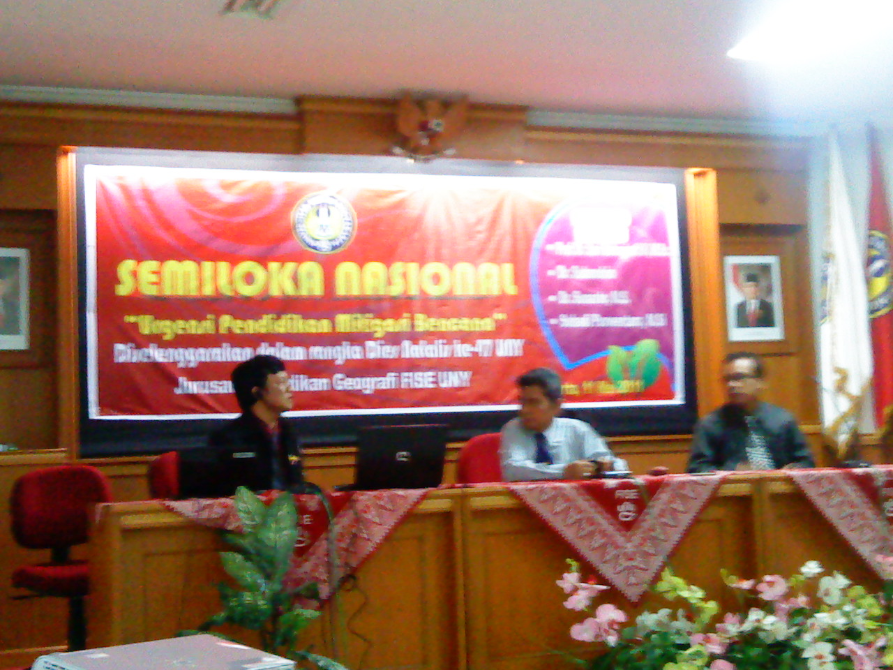Pada hari Rabu, 11 Mei 2011 saya mengikuti acara Semiloka dalam rangka Dies Natalis ke-47 Universitas Negeri Yogyakarta. Semiloka dengan tema “Urgensi Pendidikan Mitigasi Bencana” ini diselenggarakan oleh Fakultas Ilmu Sosial dan Ekonomi (FISE) UNY. Sesuai dengan tema di atas, seminar tersebut banyak berisikan materi mengenai mitigasi bencana dan wacana perlunya pendidikan mitigasi bencana kepada penduduk di wilayah Indonesia.