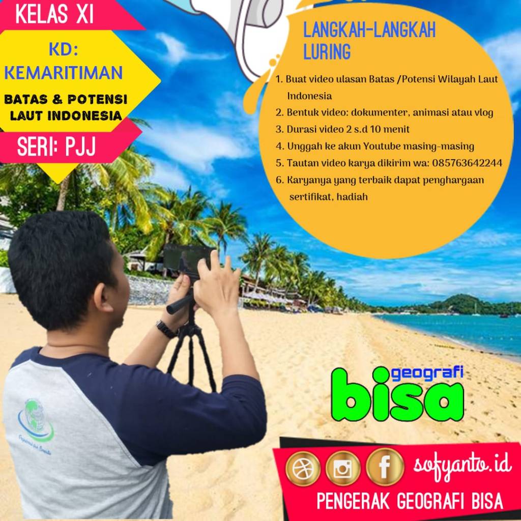 Siswa membuat video ulasan tentang batas wilayah atau potensi wilayah laut Indonesia dalam bentuk video durasi pendek antara 2 – 10 menit saja. Video dibuat dalam format dokumenter, animasi maupun vlog. Tentu saja kebebasan siswa membuat video dengan pilihan format ini dapat meningkatkan kemampuan siswa dalam mengembangkan kemampuan menulis, membuat animasi hingga melakukan komunikasi searah dalam vlog. Selain itu kemampuan editing gambar dan video menggunakan gawai juga dapat meningkatkan ketrampilan siswa dan memberikan sisi positif bagi siswa terkait penggunaan gawai.
