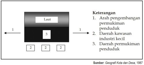 Pola persebaran desa yang terletak di daerah pantai landai. Jika penduduk bertambah, maka akan berkembang menyusur garis pantai.