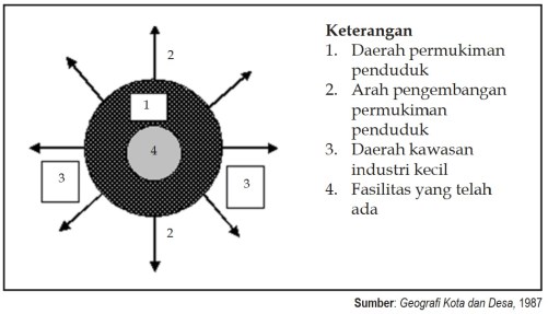 4. Pola desa yang mengelilingi fasilitas tertentu