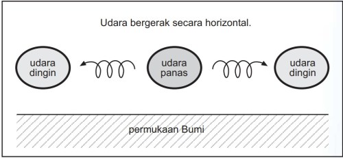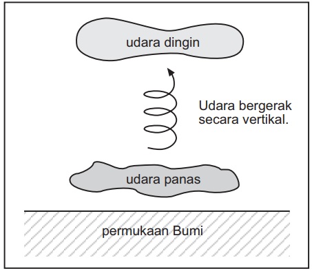 - Konveksi ialah pemanasan secara vertikal dan penyebaran panasnya terjadi akibat adanya gerakan udara secara vertikal, sehingga udara di atas yang belum panas iniΒ enjadi panas karena pengaruh udara bawahnya yang sudah terlebih dahulu panas.
