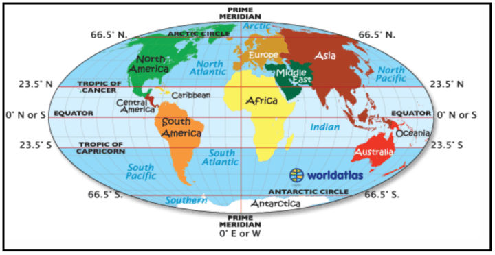 Secara teoritis dapat dinyatakan bahwa makin jauh suatu tempat dari khatulistiwa, makin besar sudut datang sinar matahari. Ini berarti makin sedikit pula jumlah sinar matahari yang diterima oleh permukaan bumi. Pembagian daerah iklim matahari berdasarkan pada letak garis lintangnya, sebagai berikut :