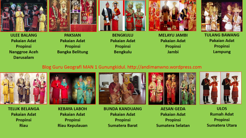 Sumatera sebagai salah satu dari lima pulau besar di Indonesia memiliki keragaman kekayaan budaya daerah. Berbagai jenis budaya daerah dari pulau ini memberikan sumbangsih terhadap budaya nasional yang membentuk karakter masyarakat Indonesia. Terdapat 10 propinsi di wilayah pulau Sumatera dan sekitarnya antara lain propinsi Nanggroe Aceh Darusalam, Sumatra Utara, Sumatra Barat, Riau, Kepulauan Riau, Jambi, Bengkulu, Sumatra Selatan, Bangka Belitung dan Lampung. Dari sepuluh propinsi tersebut masing-masing memiliki kekhasan yang membedakan antar propinsi satu dengan yang lainnya.