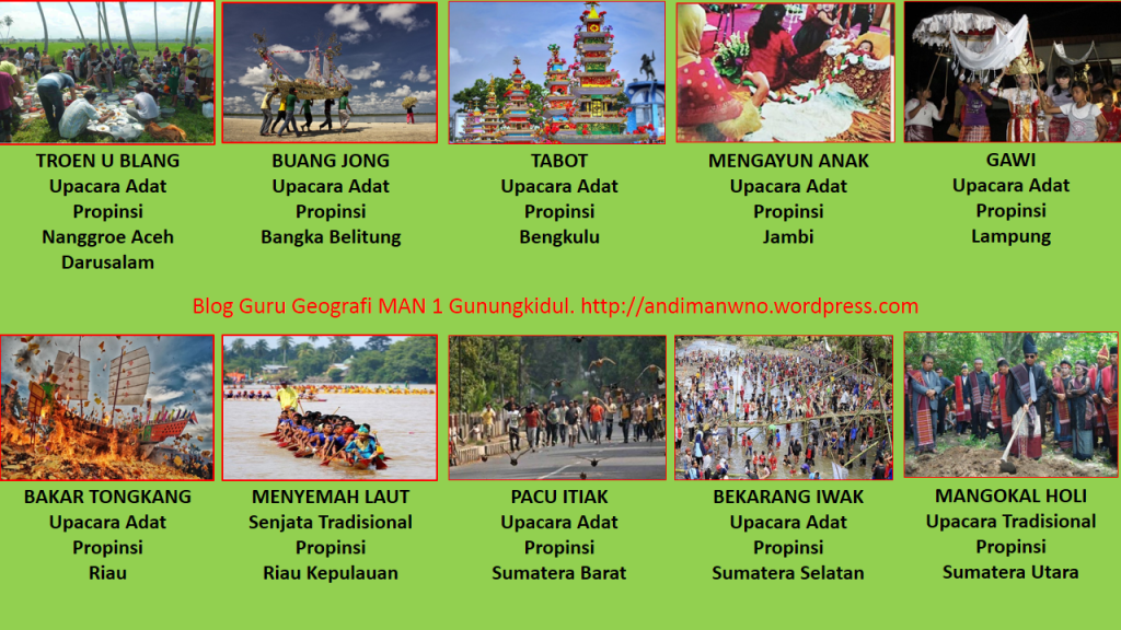 - Upacara adat Nanggroe Aceh Darussalam : Troen U Blang, Tulak Bala, Peutron Aneuk, Samadiyah, Meugang