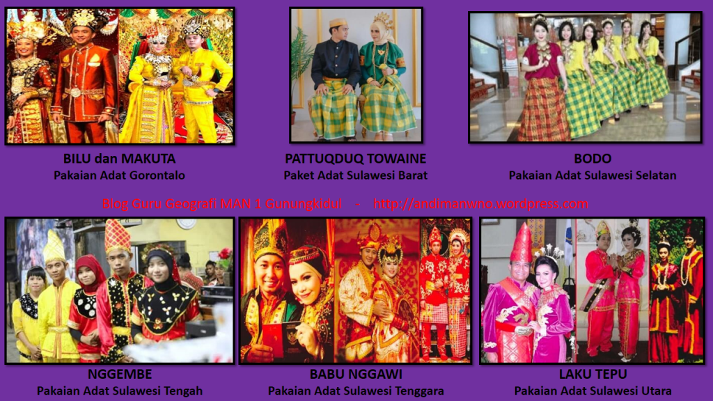 Pakaian-pakaian adat tiap propinsi di Sulawesi adalah :