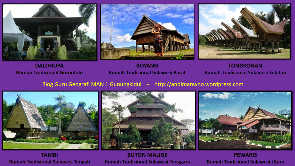 Rumah-rumah adat di tiap propinsi di pulau Sulawesi antara lain :
