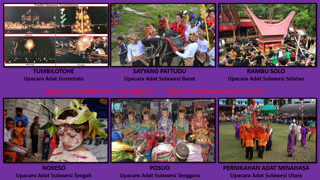 Beberapa upacara adat setiap propinsi di Sulawesi adalah sebagai berikut :