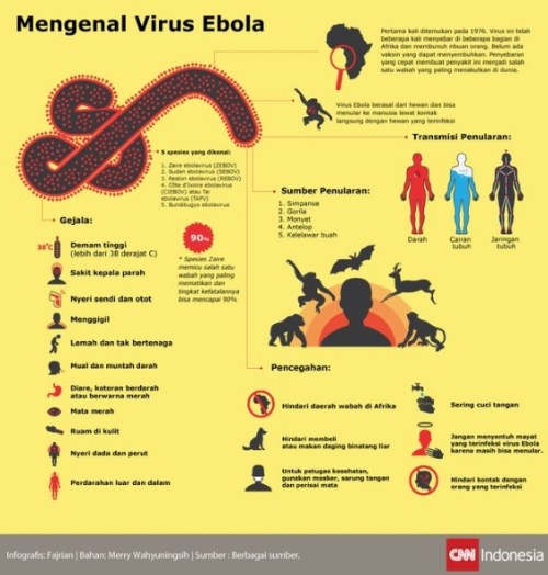 Ebola adalah suatu penyakit yang disebabkan oleh virus dan dapat berakibat fatal jika tidak segera ditangani. Penyakit ini pertama kali ditemukan di Afrika pada 1976. Virus Ebola sendiri awalnya hidup pada tubuh hewan, kemudian menjangkiti manusia melalui darah hewan yang sudah terkontaminasi virus. Hingga saat ini, belum ditemukan pengobatan untuk menyembuhkan Ebola. Pengobatan yang diberikan hanya bertujuan untuk mendukung kekebalan tubuh pengidap dalam memerangi virus.