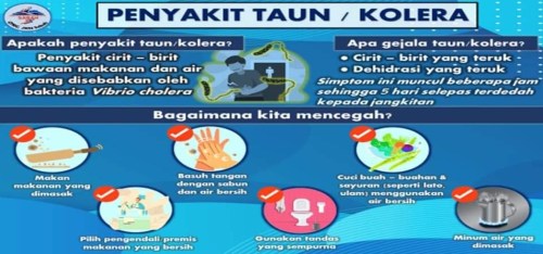 Kolera adalah infeksi saluran pencernaan yang disebabkan oleh bakteri Vibrio cholerae. Bakteri tersebut masuk ke dalam tubuh melalui konsumsi makanan atau minuman yang terkontaminasi. Kolera menyebabkan diare yang berat dan dehidrasi. Apabila tidak diobati, maka dalam beberapa jam, kolera bisa berakibat fatal bahkan dapat menyebabkan kematian.
