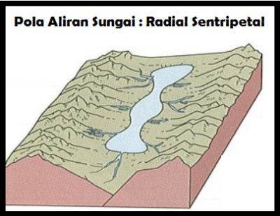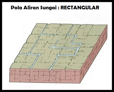 Beberapa pola aliran sungai yang dapat kita jumpai di permukaan bumi adalah sebagai berikut :
