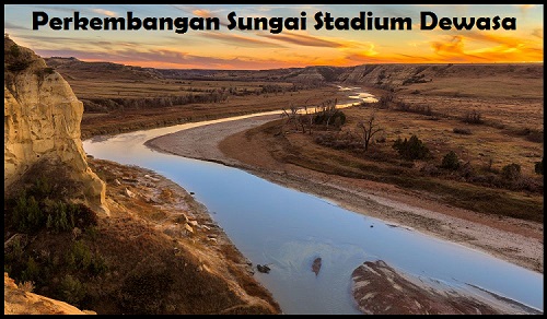 Stadium dewasa suatu aliran sungai biasanya terdapat di bagian tengah di daerah yang cenderung mulai landai dan tingkat kemiringan lereng makin mengecil.