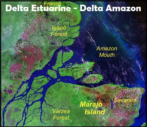 - Delta Estuarine, yaitu delta yang terbentuk di wilayah muara yang memanjang dan sempit. Contoh delta estuarine adalah Delta Amazon dan Pearl.