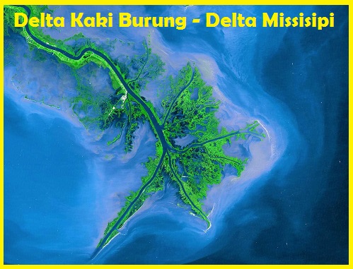 - Delta Kaki Burung, yaitu delta yeng memiliki bentuk menyerupai jari yang menyebar dari muara ke arah laut. Contohnya delta kaki burung adalah delta Citarum dan Mississippi.