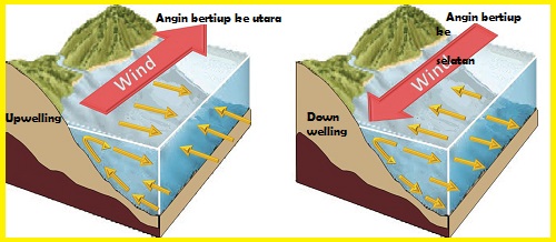 Up Welling Current adalah naiknya peristiwa massa air dingin dari lapisan laut dalam ke lapisan permukaan karena adanya kekosongan massa di permukaan. Zone Up Welling merupakan wilayah yang kaya dengan sumber daya ikan karena di daerah tersebut merupakan tempat berkumpulnya plankton sebagai makanan ikan. Contoh zone Up Welling di Indonesia adalah sekitar perairan Maluku. - Down welling