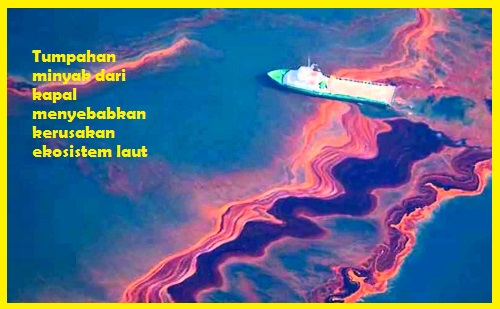 Kapal-kapal tanker yang membawa minyak mentah pada saat mengalami kebocoran dan kemudian minyak mentah di dalamnya tumpah ke laut maka akan menyebabkan pencemaran laut yang parah. Begitu pula dengan kebocoran di penambangan minyak lepas pantai juga turut menyebabkan pencemaran yang membuat kerusakan perairan laut dan lingkungan di bawahnya.