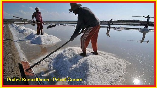Petani garam merupakan pekerjaan yang berhubungan dengan kelautan atau kemaritiman. Petani garam memanfaatkan lahan-lahan datar di tepi pantai yang air lautnya memiliki kadar garam tinggi. Air-air laut yang dimasukkan ke dalam lahan mirip tambak dibiarkan mengering dan diambil kristal-kristal garam yang tertinggal tidak ikut menguap.