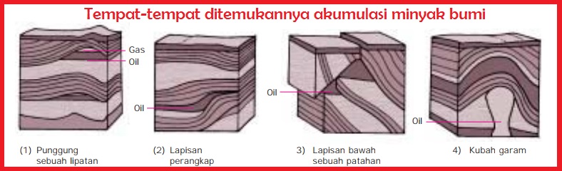 Akumulasi atau terkumpulnya minyak bumi dapat ditemukan di empat tempat, yaitu: