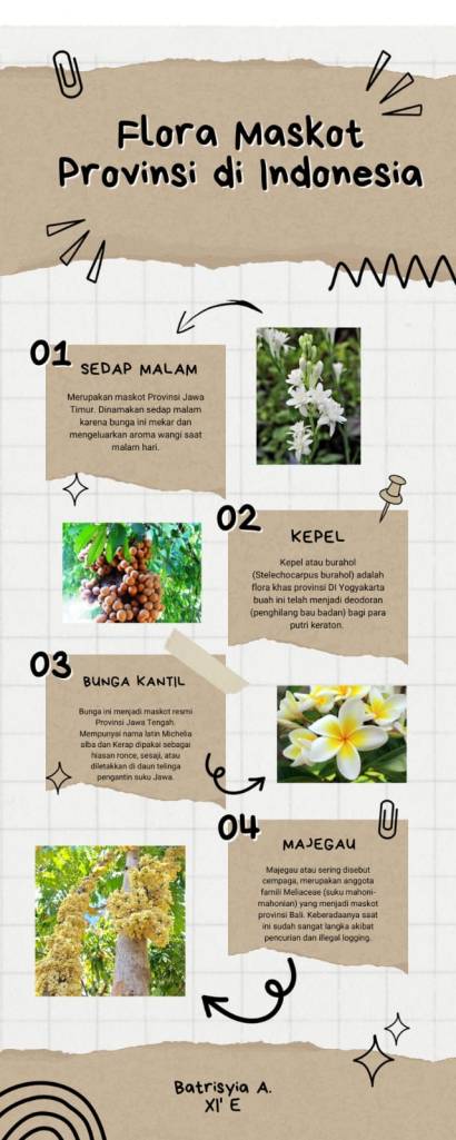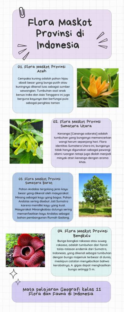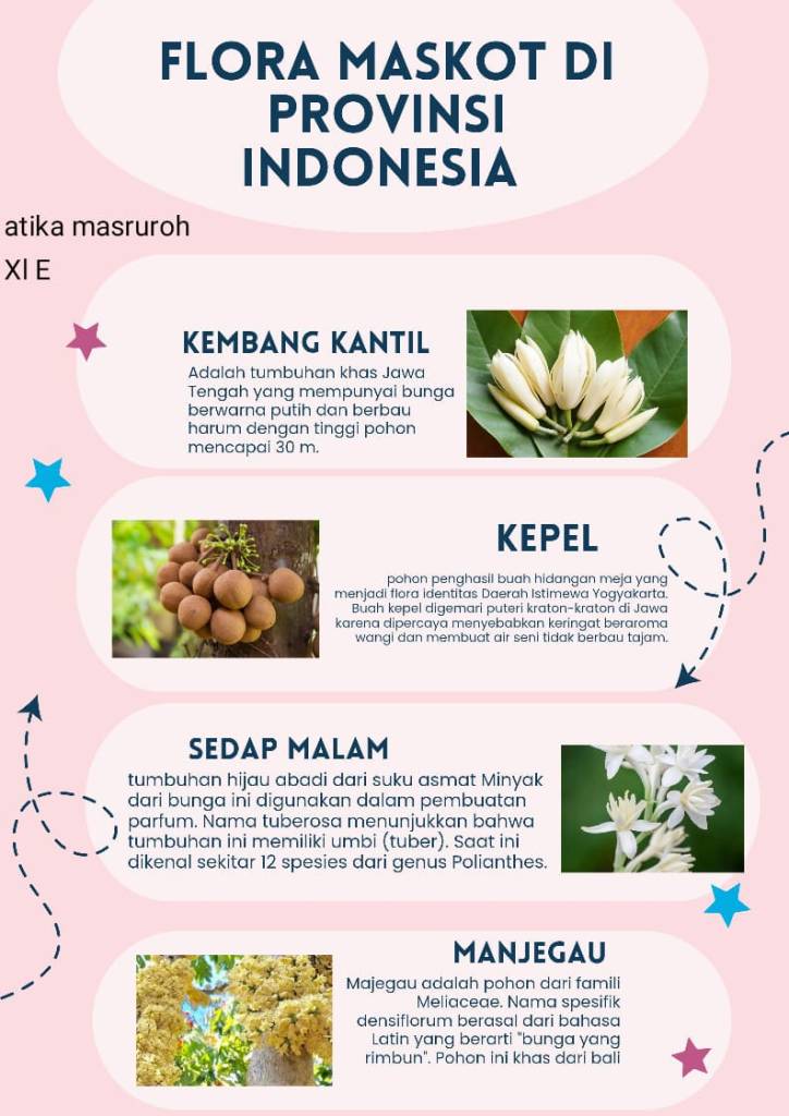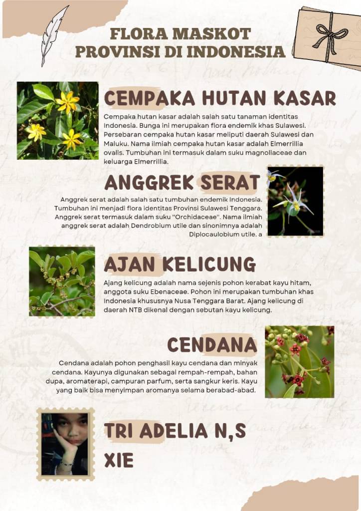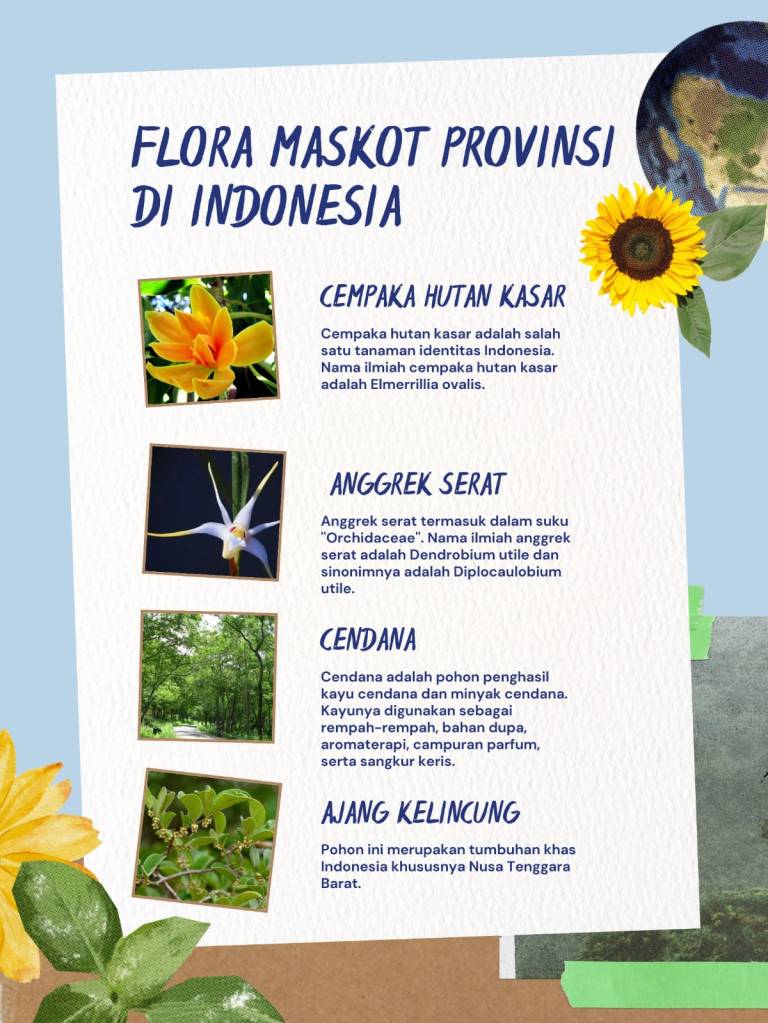 Sedangkan untuk kolase di atas adalah karya siswa kelas XI D Mansageka 2023-2024 yang membuat kolase tentang contoh-contoh flota (tumbuhan) yang menjadi maskot provinsi di Indonesia.
