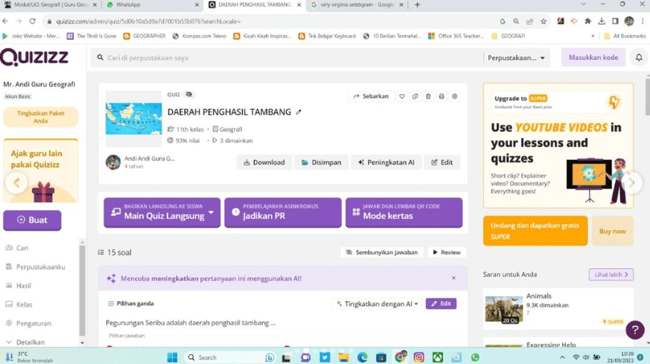 Melaksanakan Kuis untuk Post Test Menggunakan Mode Kertas pada Aplikasi Quizizz