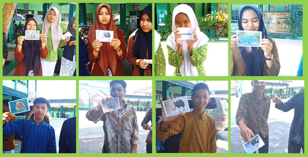 Prinsip dari model ini secara garis besar adalah siswa membuat lingkaran dan memindah-mindah kartu sesuai aba-aba dari guru lalu mengangkat kartu tertentu yang disebutkan guru. Model kartu persebaran fauna Indonesia ini saya buat pada kertas ukuran HVS seperti berikut :