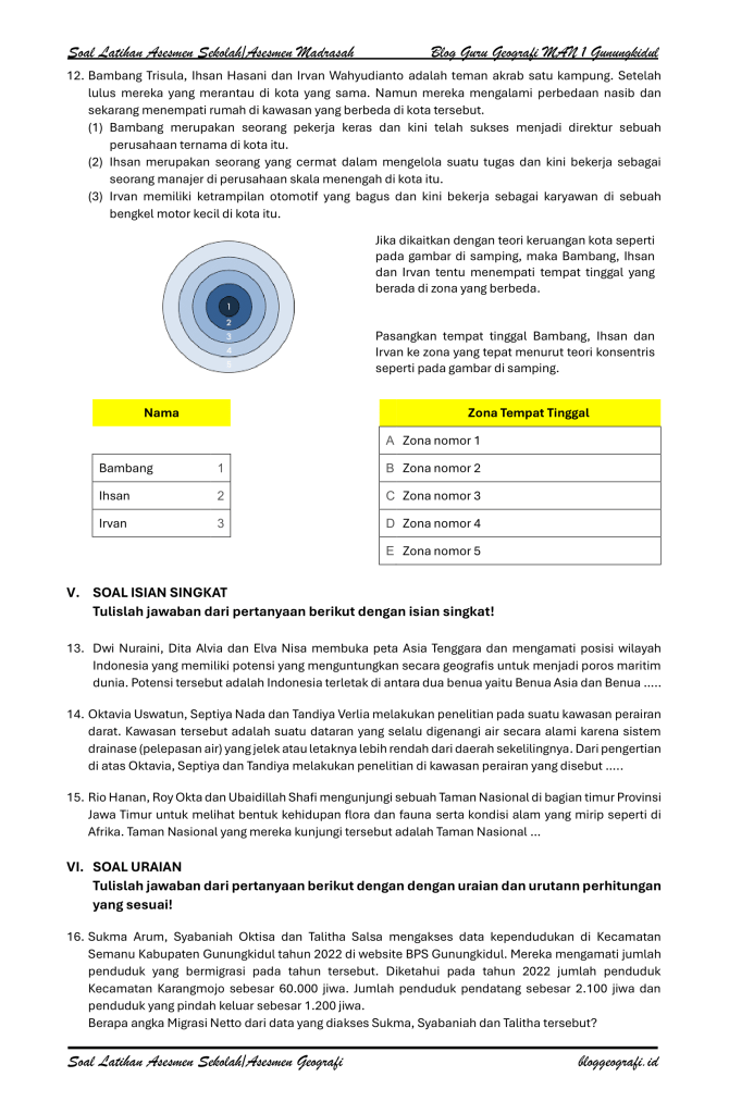 Silahkan klik gambar dan geser untuk melihar gambar berikutnya. Itulah contoh soal latihan Asesmen Madrasah mapel Geografi yang saya buat.